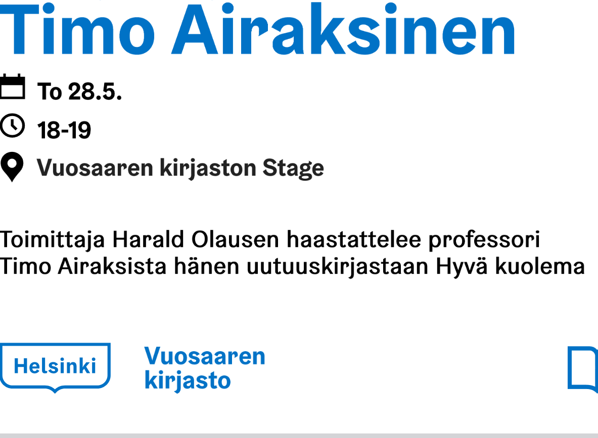 Kirjailijavieraana Timo Airaksinen | Vuosaaren kirjasto | Helsinki